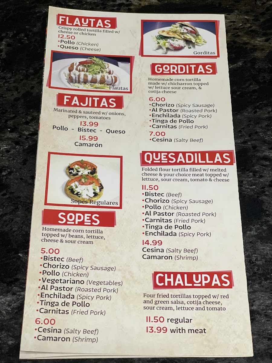 El Mil Sabores Menu